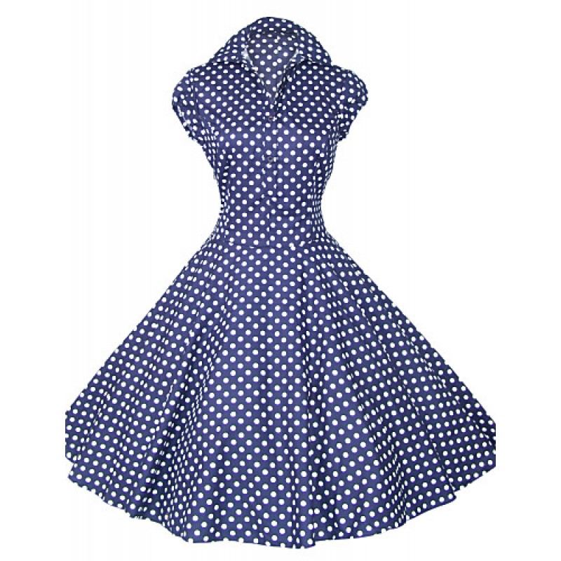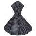 Product Code: Women's White/Black/Blue 50s Vintage Polka Dots Swing Midi Dress